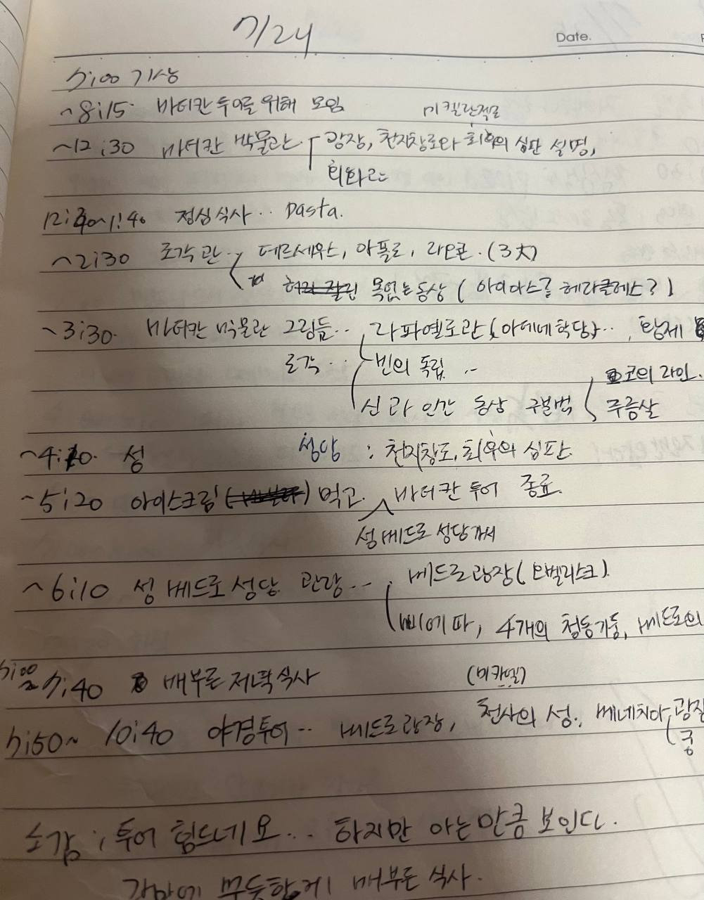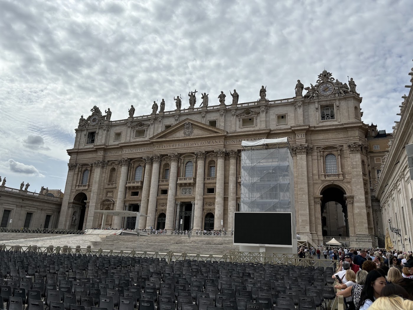 우리의 바티칸 투어는 베드로 성당 앞까지였다. 베드로성당은 현재 여러 공사 중이라 들어가도 볼 수 있는 게 별로 없다고 한다. 내년은 희년이라 천국 가고 싶은 더 많은 사람이 모일 예정이라고 한다.(여기서 더? 물리적으로 가능?)