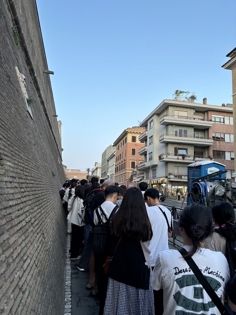 그렇게 7시가 안 되어 바로 출발~했지만 일찍 간다고 빨리 들어가는 것이 아니다. 바티칸시국의 입구에 있는 바티칸박물관은 9시에 입장이 가능하기 때문이다. 바티칸은 참고로 일요일엔 휴무, 내가 갔던 월요일부터는 추석. 한마디로 ‘대목’이자 ‘제철’이기에 줄이 길어질 수밖에 없었고 무려 2시간 이상 웨이팅 끝에 입장할 수 있었다. (아직 시작도 안 했는데 피곤하고 다리 아프기 시작)