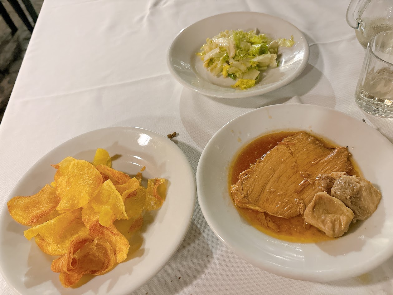 사장과 종업원이 영어를 못하니 주문이 어렵지 않을지 걱정할 필요가 1도 없다. 여기서 손님이 선택해야 할 것은 와인이 ‘화이트인지 레드인지’ 그리고 물이 ‘내츄럴’인지 ‘스파클링’인지 딱 두 가지뿐이다. 메뉴판도 없다. 자리에 앉으면 사장님이 알아서 전채요리-탄수화물(파스타)-단백질(고기)-후식 순으로 갖다주신다.