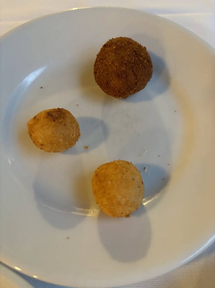 이후 또 다른 전채요리로 미트볼과 라이스볼이 나왔다. 얼핏 보고 수플리인가 싶어 물어봤는데 종업원이 어떤 요리인지 설명해 주었다. 이어 메인요리인 파스타가 나왔다. 파스타가 짜다는 리뷰도 있었는데 개인적으론 입맛에 잘 맞았다.