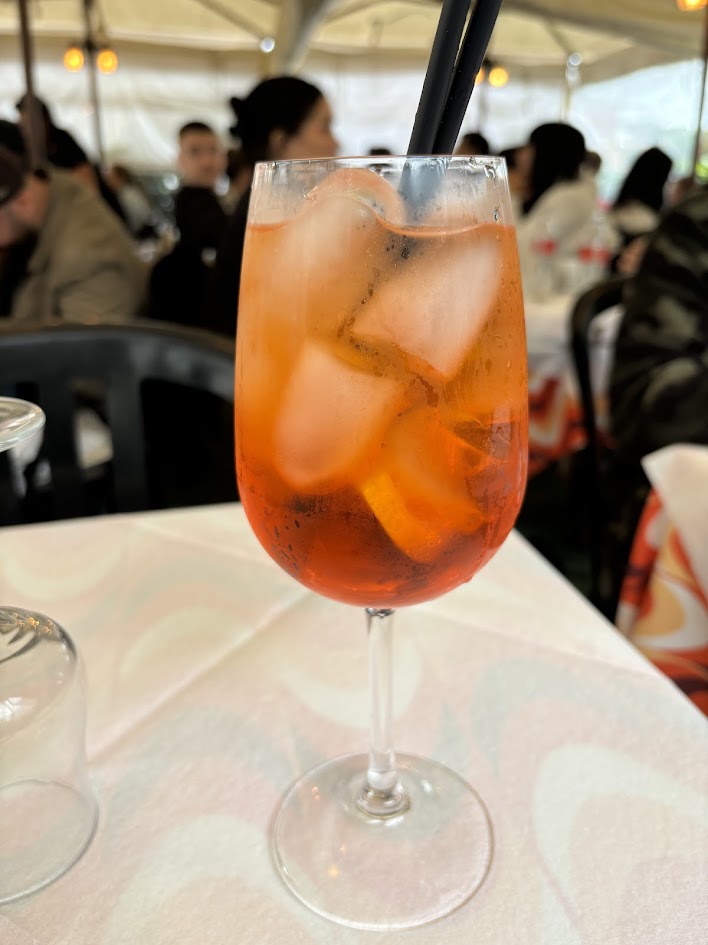 음식을 기다리는 데 친절한 종업원이 와서 마실 건 어떻게 할 거냐고 물었다. 그래서 식전주 아페롤 스프리츠를 한 잔 달라고 했더니 ‘퍼펙트’라고 답해주었다. (혼자 와서 이 정도로 시키니 너 입장에선 당연히 퍼펙트겠지.) 목이 마를 것 같아 물도 하나 시켰다.