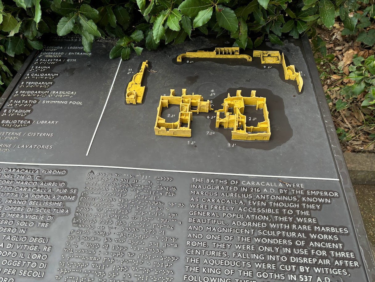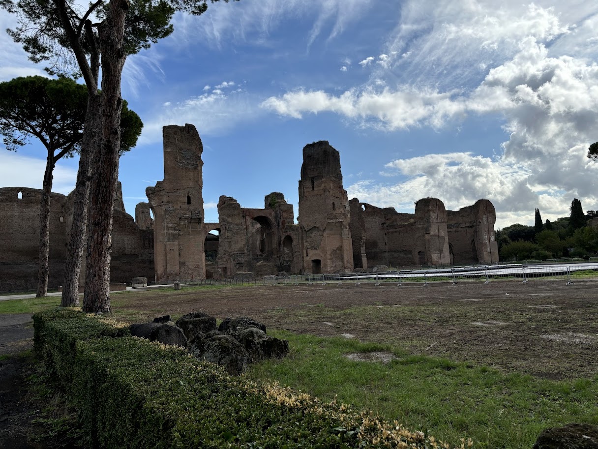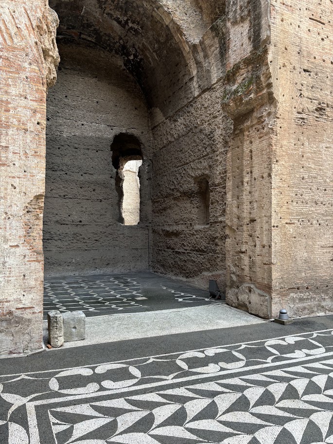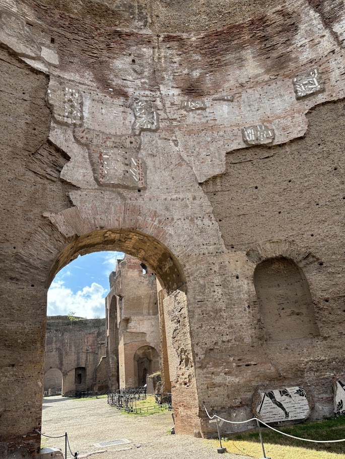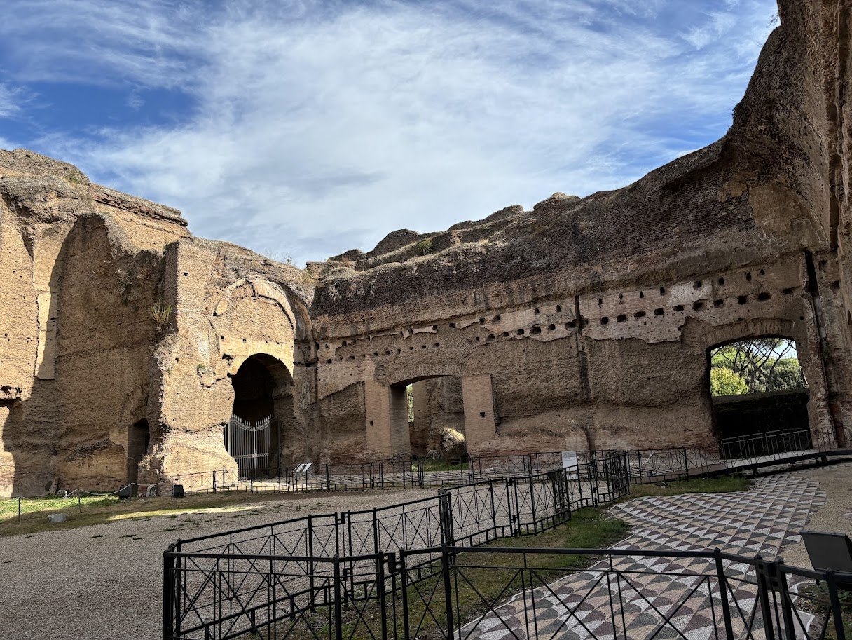 위 사진들처럼 목욕탕 안에 창이 있는 이유는 낮 시간 동안 오랜시간 빛을 받아들여 내부 온도를 유지하기 위해서였다고 한다. 목욕탕이었다는 것이 잘 상상이 안 될 정도로 지금은 터만 남아있지만 형태를 알아볼 수 있도록 가장 잘 보존된 목욕탕 유적이다. '디오클레티아누스 목욕장'이 지어지기 전까지 최대 규모였다고. (이보다 더 큰 게 존재했다는 게 더 놀라움)