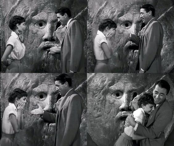 헤라클레스 신전을 지나 드디어 <로마의 휴일> 속 한 장면으로 유명한 진실의입 앞에 도착했다. 거짓을 말하는 사람이 입 안에 손을 넣으면 손이 잘린다는 설화로 유명한데, 사실 진실의입은 그 용도를 정확히 알 수 없다. 헤라클레스 신전의 하수도 뚜껑이었다는 썰이 있는데 정확치는 않다.
